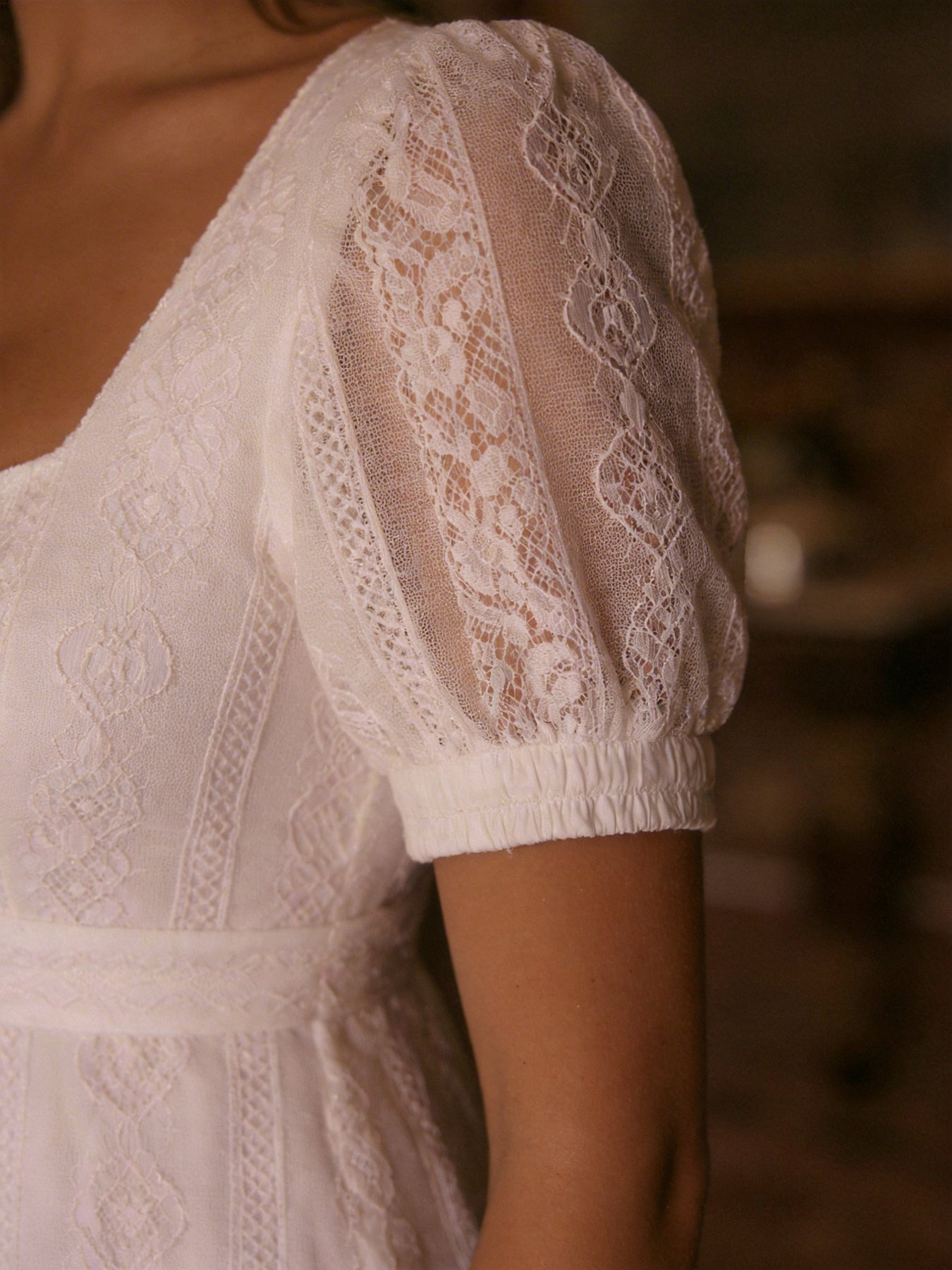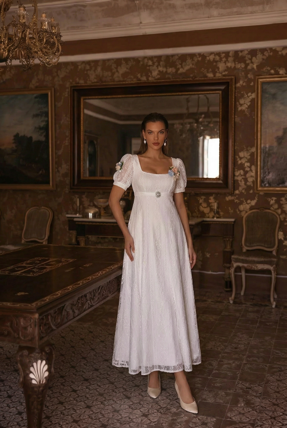 A graceful vintage gown designed for sunlit moments and poetic strolls.