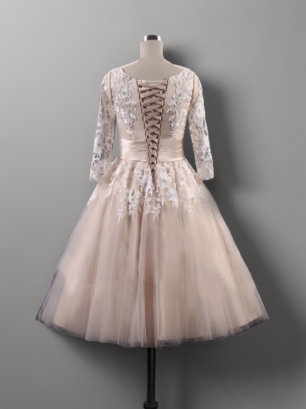Retro 50s Modest Tea Length Short Lace Wedding Dress
