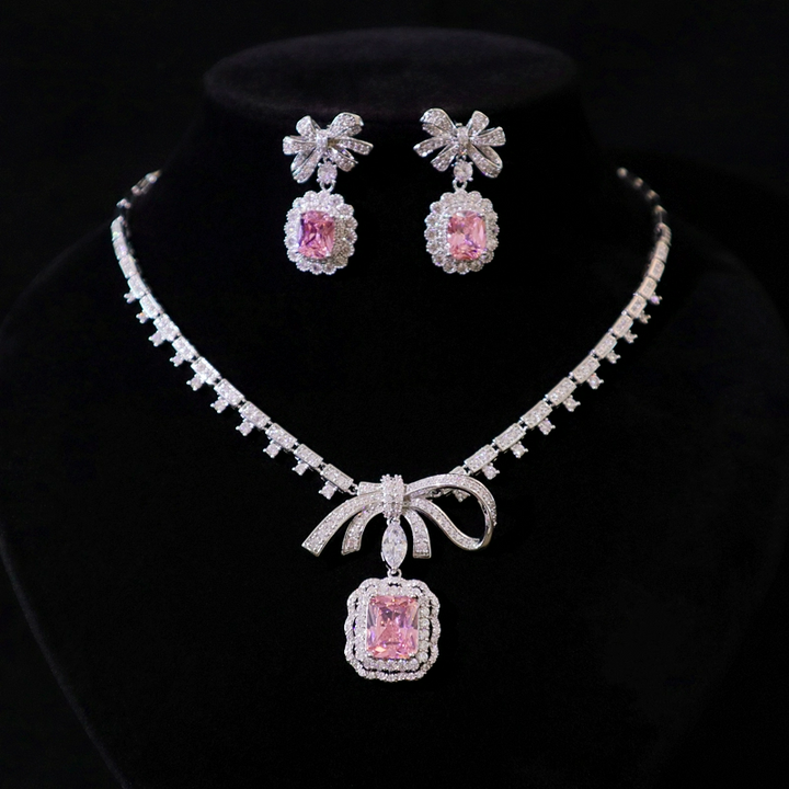 Capture the essence of romance with this Vintage-Inspired Pink Gemstone Necklace and Earrings Set. Featuring delicate cherry blossom pink gemstones, this jewelry set exudes soft elegance and timeless beauty, making it the perfect accessory for weddings, formal occasions, or special celebrations.