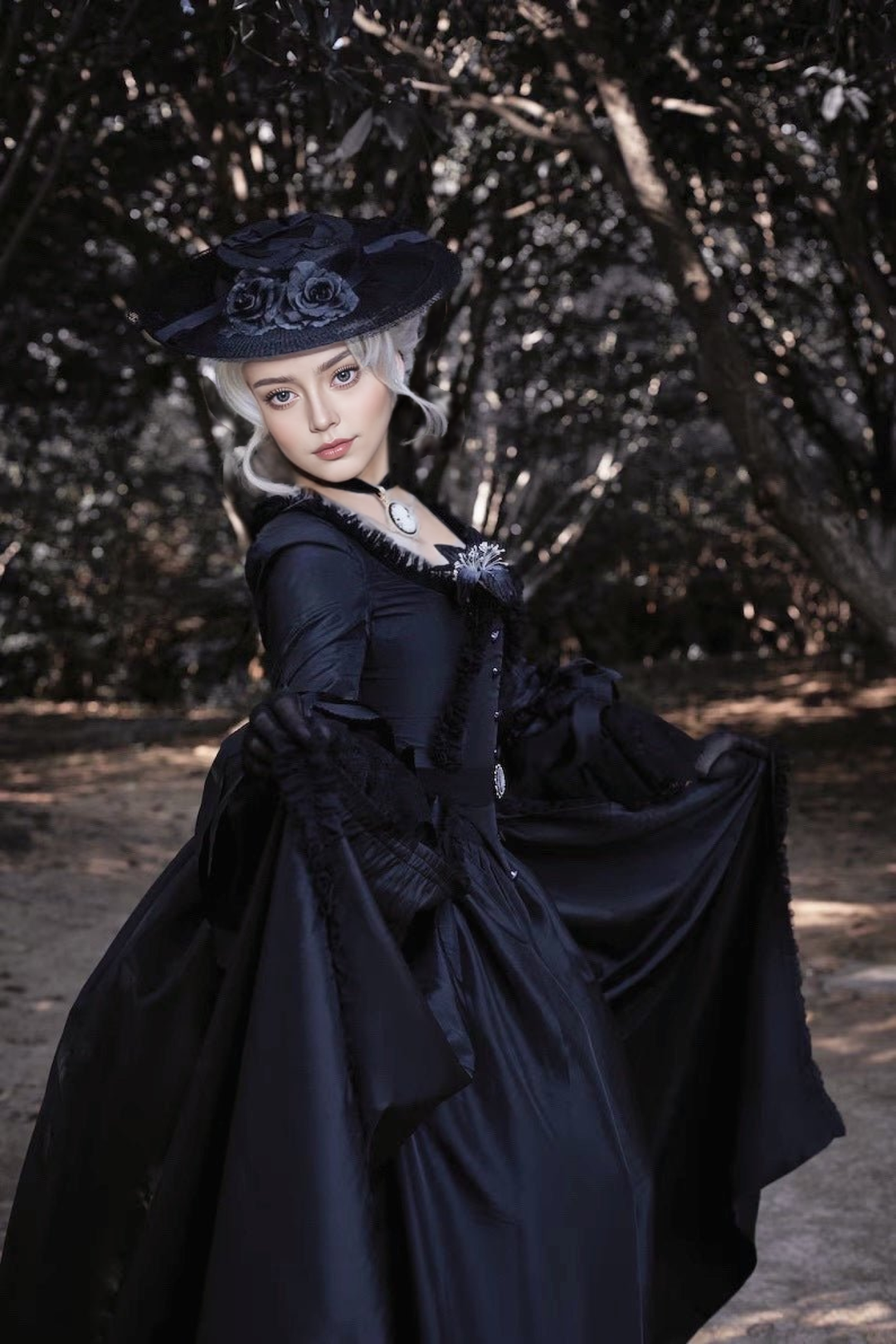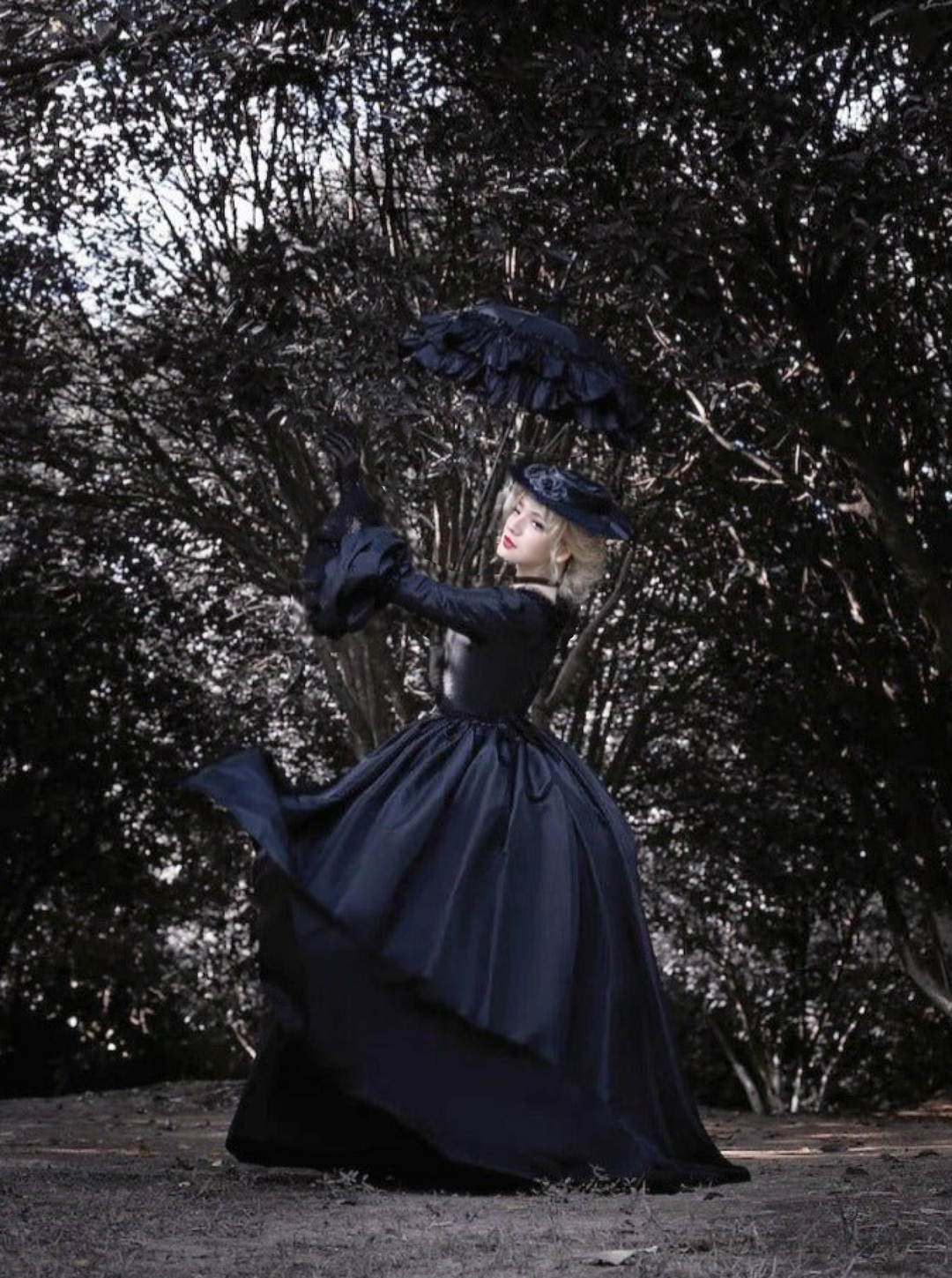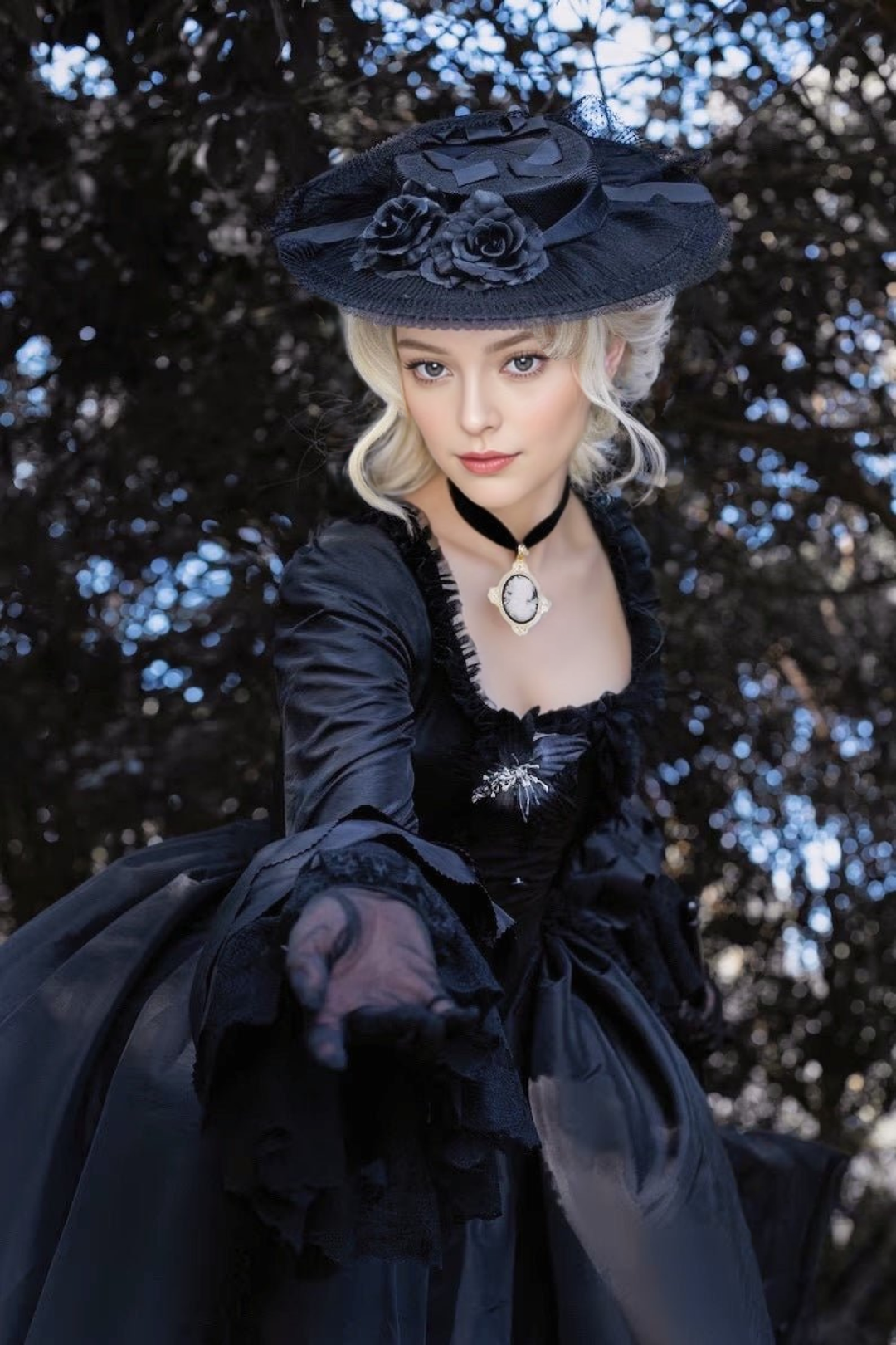 Envelop yourself in the enigmatic charm of the Black Gothic Victorian Ball Gown, a masterpiece of Rococo style reimagined for the modern muse. This Plus Size creation is a celebration of dark romance, featuring a cinched belted waist that accentuates your silhouette with a touch of tailored sophistication. The opulent black fabric whispers tales of moonlit rendezvous and Gothic allure, with each fold and drape paying homage to the grandiosity of bygone eras. Lavish lace and cascading ruffles frame the neckline and sleeves, flowing seamlessly into a full skirt that billows with an air of mystery and grace. Designed for those who hold a candle for the night's splendor, this gown is a sartorial sonnet dedicated to timeless elegance. Whether you're attending a candle-lit ball or an elegant evening affair, this dress is your escort into a world of Victorian-inspired splendor, sized inclusively to empower every wearer with confidence and grace.