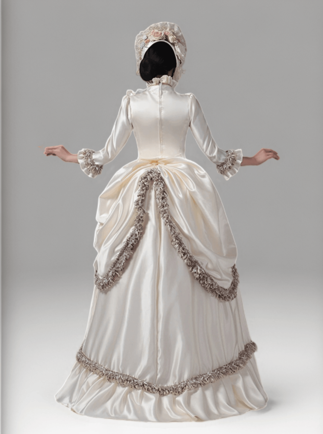 Elegant Cream Medieval Dress with Floral Embellishments – Rococo Ball Gown with Lace Trim Plus Size - WonderlandByLilian