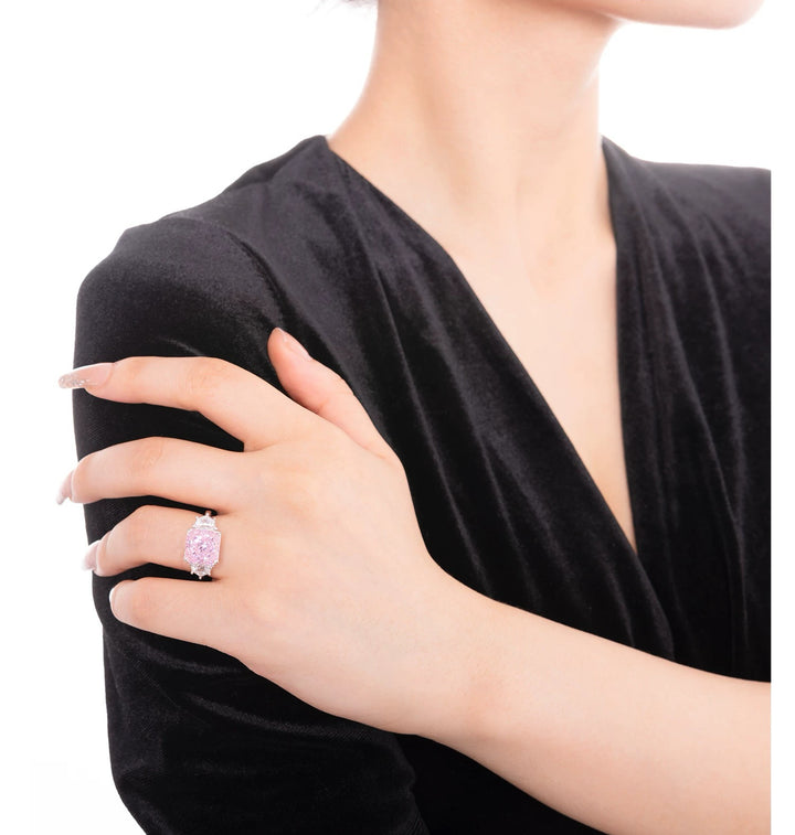 Vintage-Inspired Pink Emerald Cut Decoy Travel Engagement Ring 5.5 Carat
