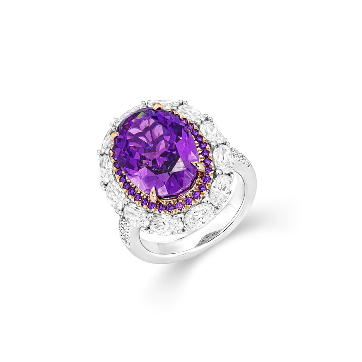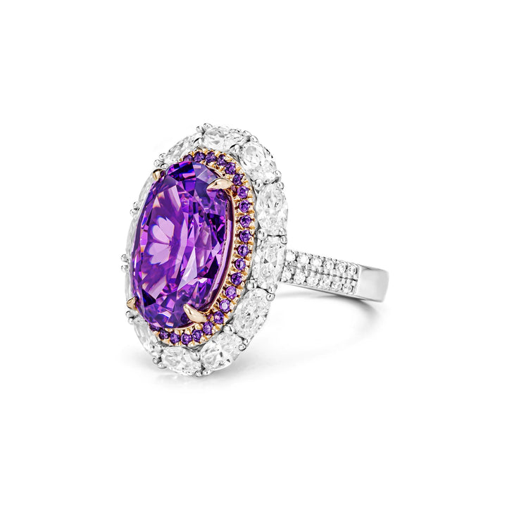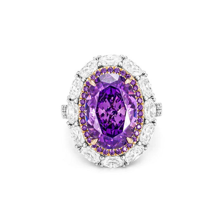 • Main Stone: 8 carat oval cut purple cubic zirconia (lab-created)