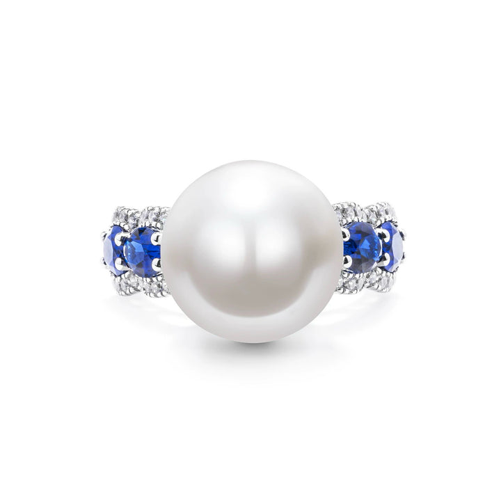 This Vintage-Inspired Pearl Engagement Ring is designed as the perfect travel ring—elegant, practical, and timeless. A luminous white pearl takes center stage, accented with deep blue gemstones and sparkling cubic zirconia for a refined vintage look. Crafted from 925 sterling silver, it combines sophistication with everyday wearability, making it ideal for travel, proposals, or as a graceful statement piece.