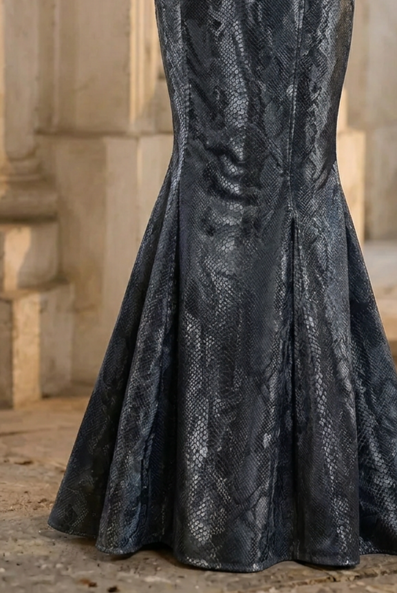 • Gothic Mermaid Silhouette: The fitted bodice and mermaid-style skirt create a striking silhouette, enhancing your curves and adding dramatic flair to your look.