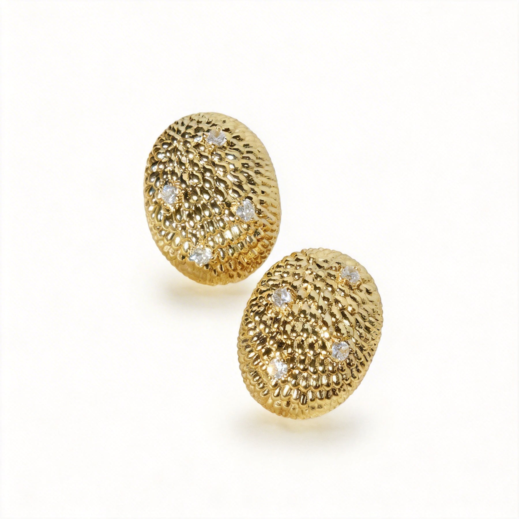 Inspired by the laurel wreaths of classical goddesses, Golden Laurel embodies strength softened by grace. Intricate gold filigree curves outward in layered loops, forming a radiant halo around a luminous pearl center. Diamond-white crystals rest delicately within the sculpted lines, catching light like quiet constellations against warm antique gold. The design feels both regal and fluid — structured in form, gentle in presence.