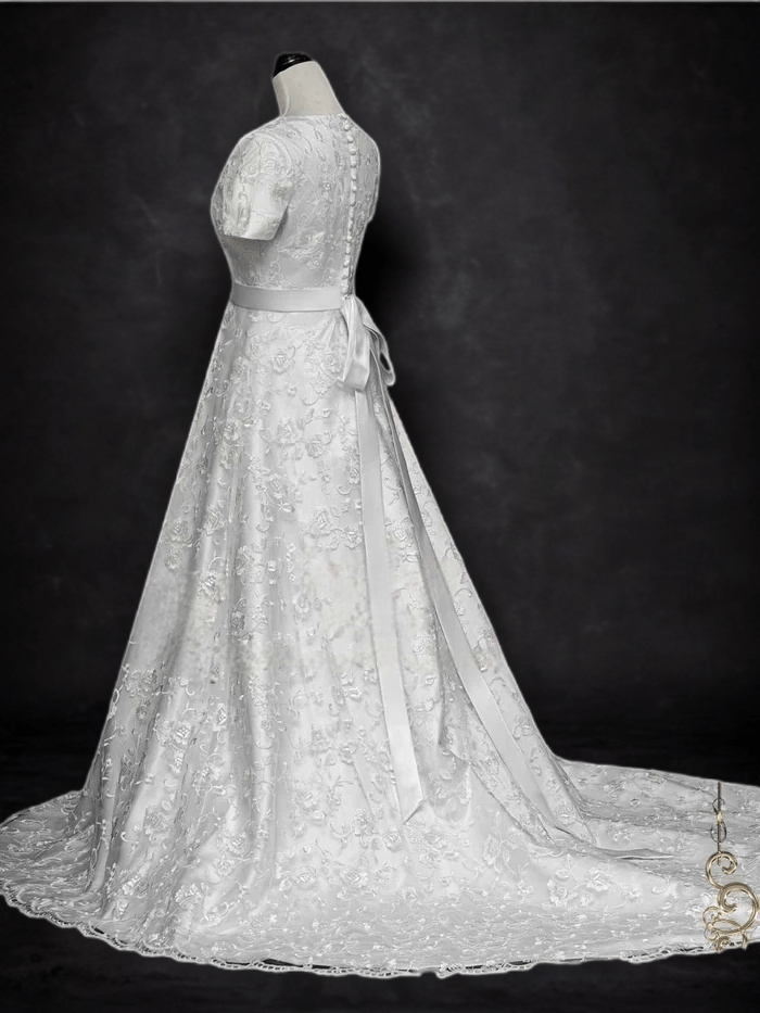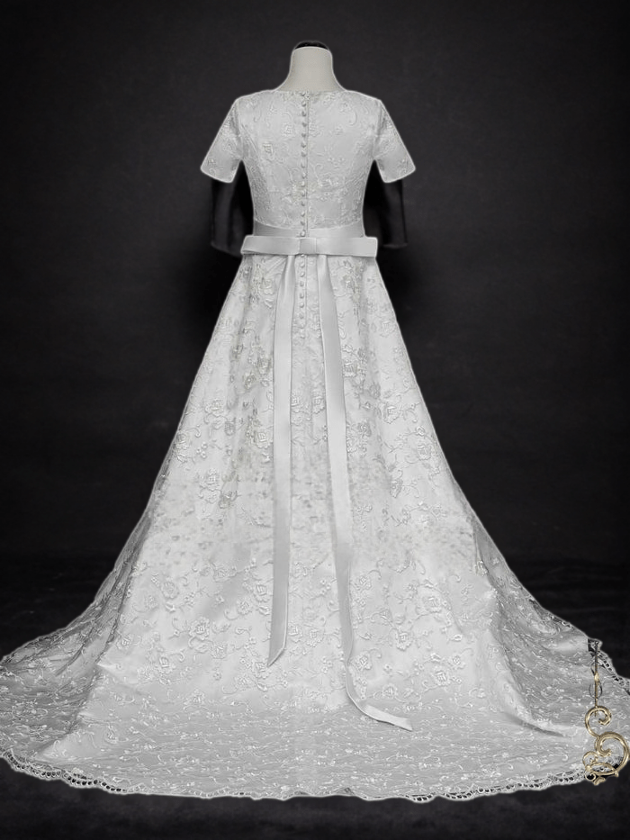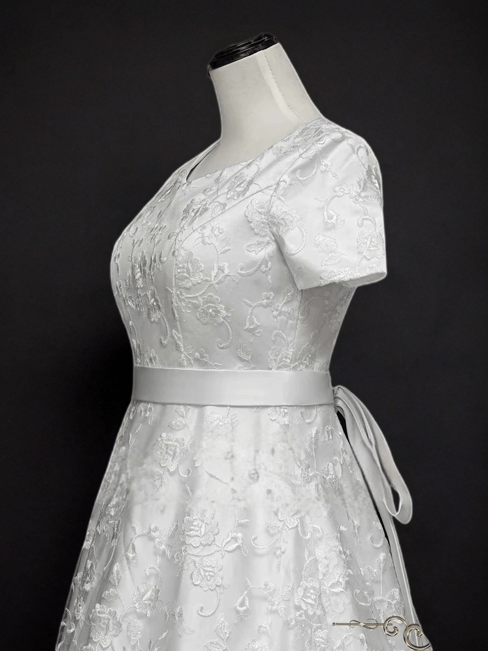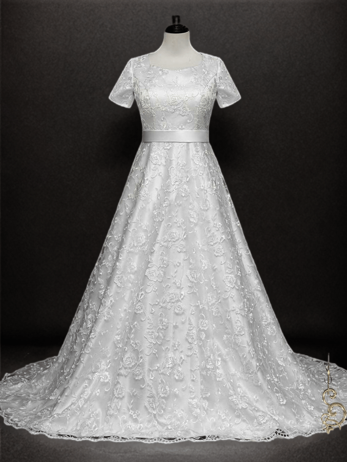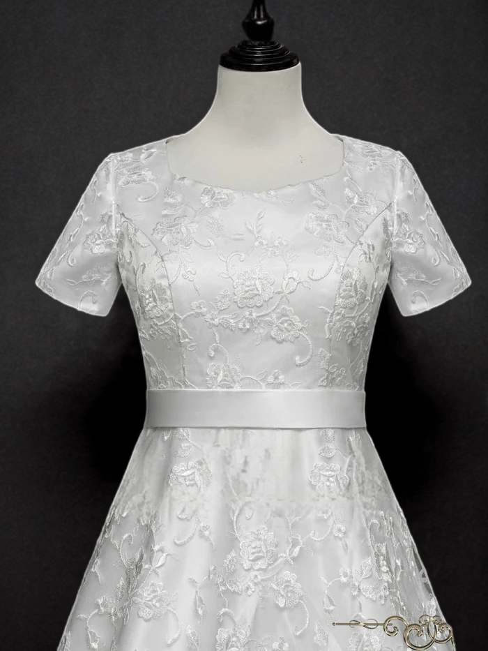 Timeless Sophistication: Modest Lace A-Line Wedding Dress with Short Sleeves - WonderlandByLilian