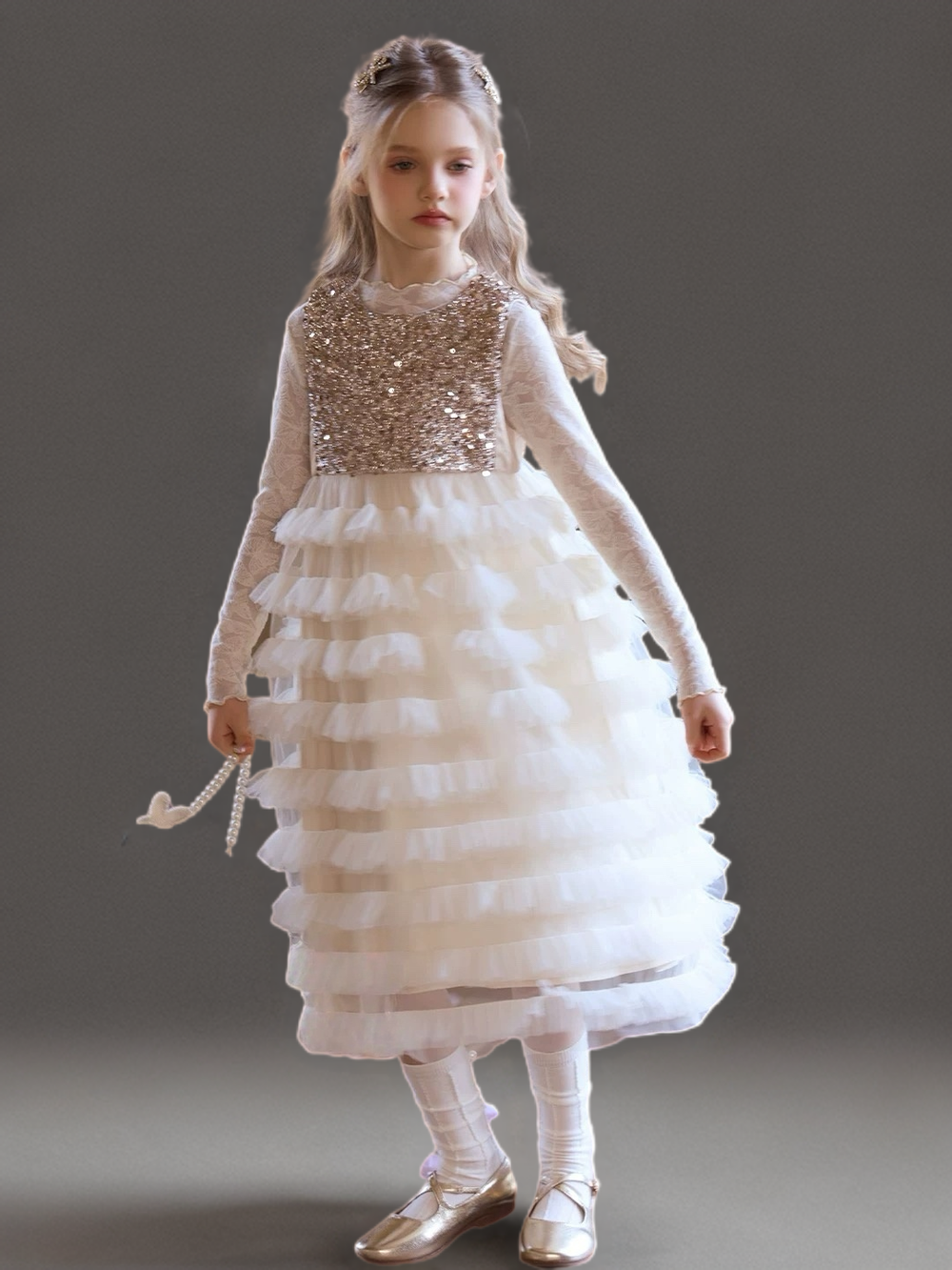 Turn every moment into a fairytale with this Champagne Sequin Bodice Flower Girl Dress. Designed for weddings, parties, and elegant celebrations, this gown features a dazzling sequin bodice that shimmers with every step. The layered tulle skirt adds volume and flow, while the soft cotton lining ensures breathable comfort for all-day wear. The champagne shade enhances its refined and graceful charm, perfect for creating unforgettable memories.