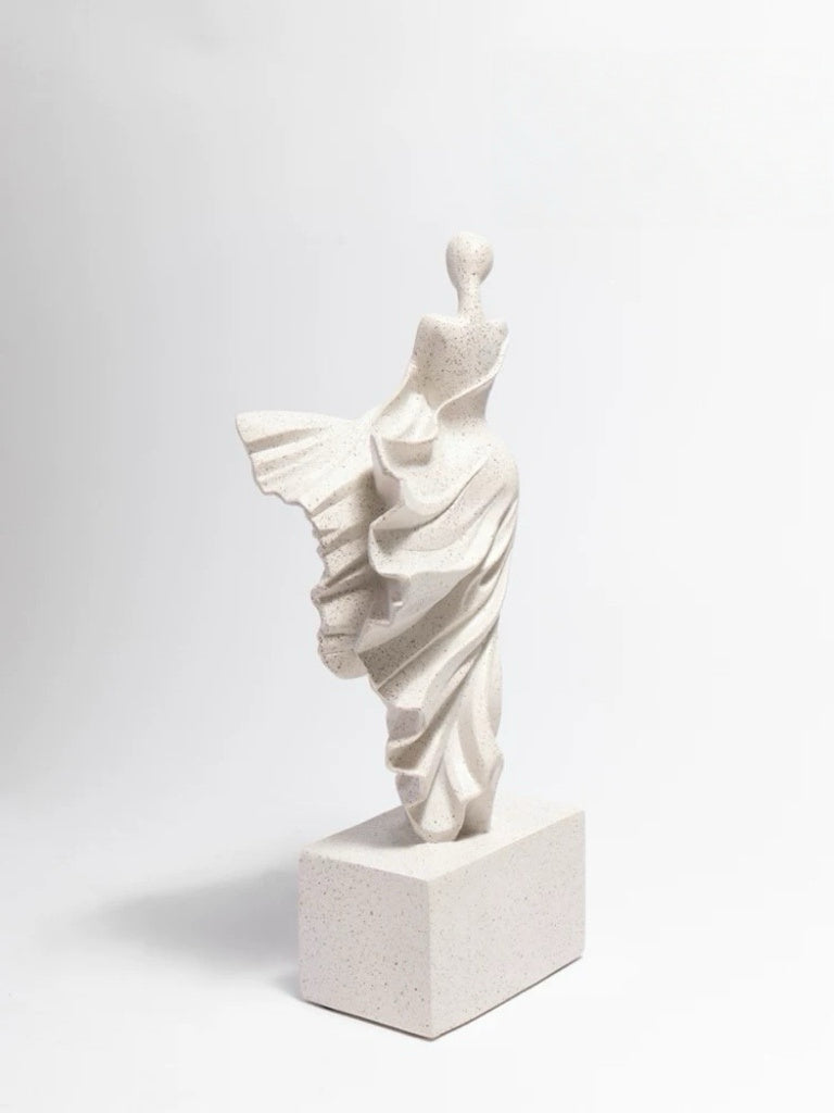 This handmade Italian figurine embodies the timeless beauty of femininity through flowing lines and sculptural grace. Crafted from premium Danish resin, it features a rock-like texture that adds depth and character to its ivory-toned surface. The figure’s elegant form recalls the movement of draped fabric, capturing a moment of serenity and strength.