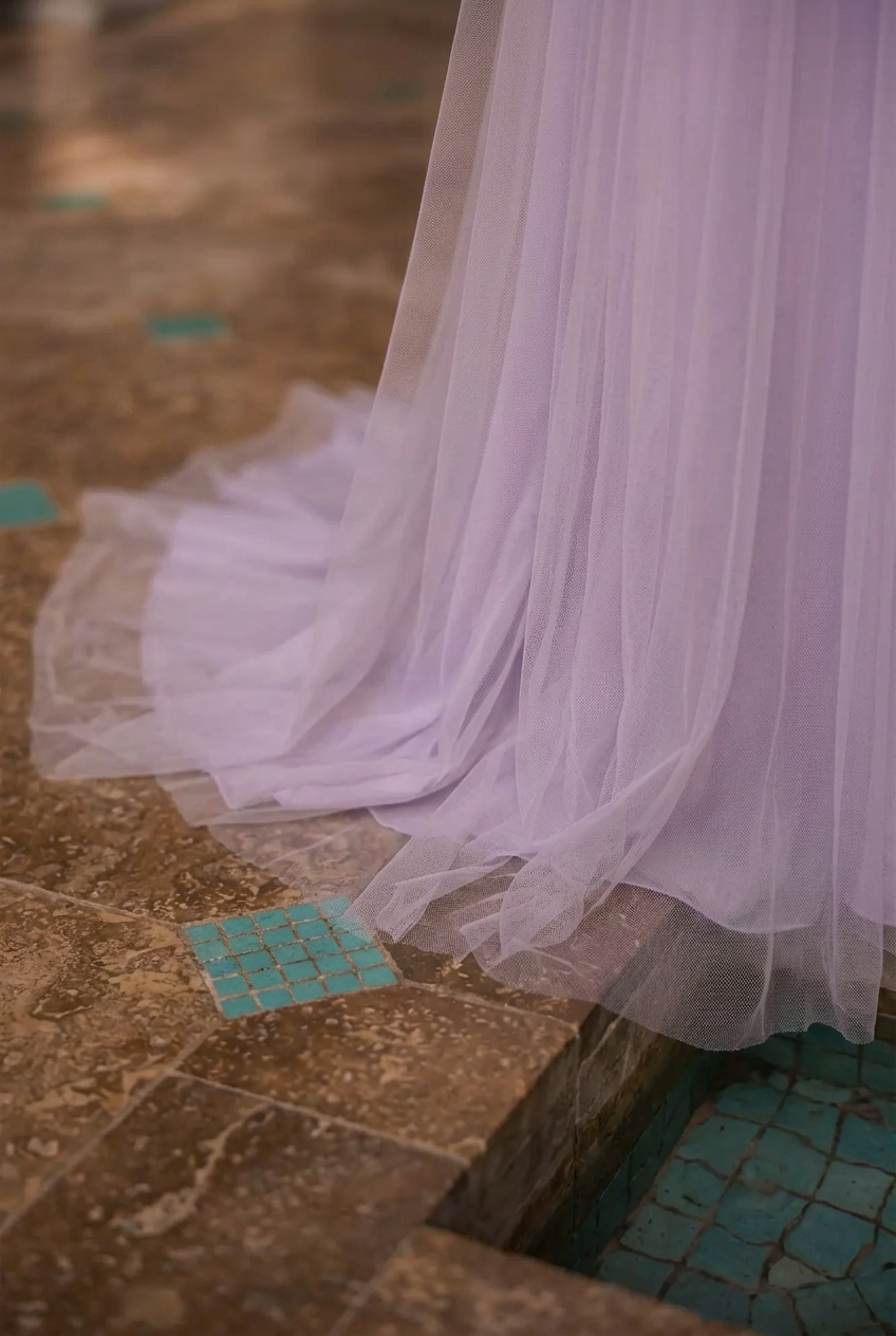 We source our fabrics globally, and we offer a wide range of colors and fabric types, including lace, tulle, and satin. If you have specific requests, feel free to contact us and we’ll do our best to match your preferences.