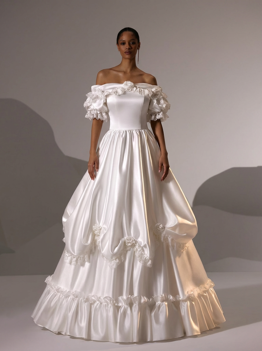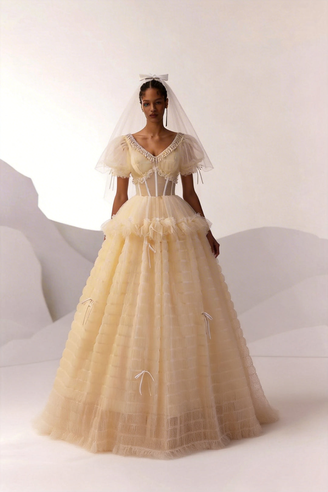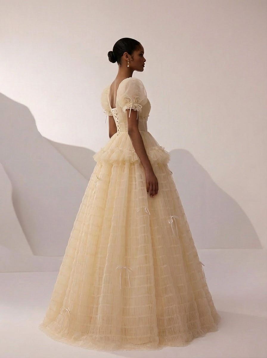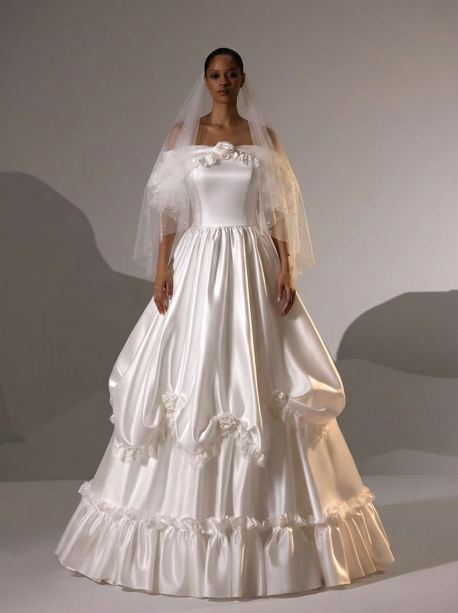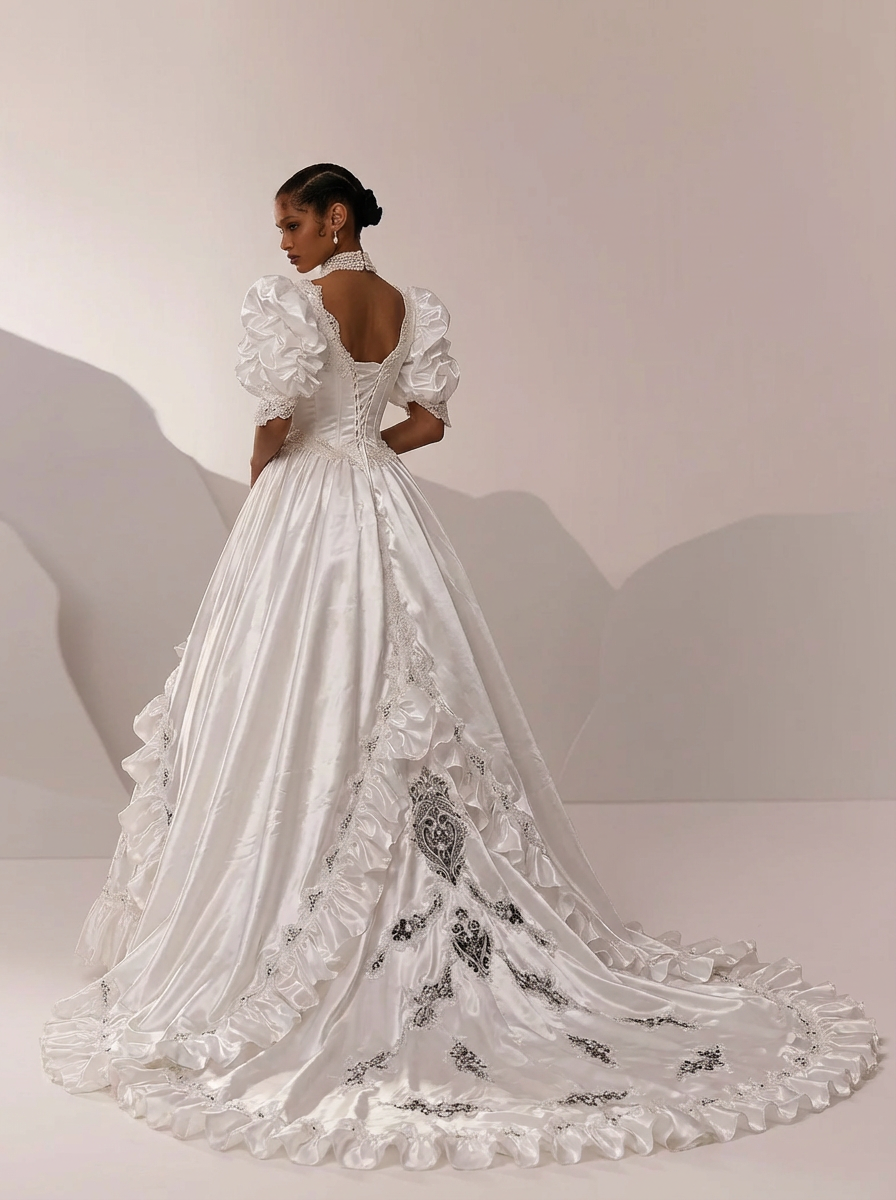• Made-to-Order Masterpieces: Most of our wedding gowns and ball gowns are carefully made-to-order. After receiving your order, our artisans begin the process of bringing your dream dress to life. Standard production takes 2–5 weeks.