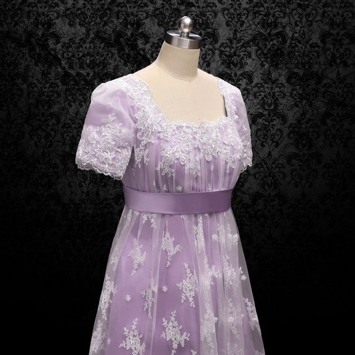 Bridgerton Lavender Regency Wedding Dress With Lace- Regency Era Purple Ball Gown Plus Size - WonderlandByLilian