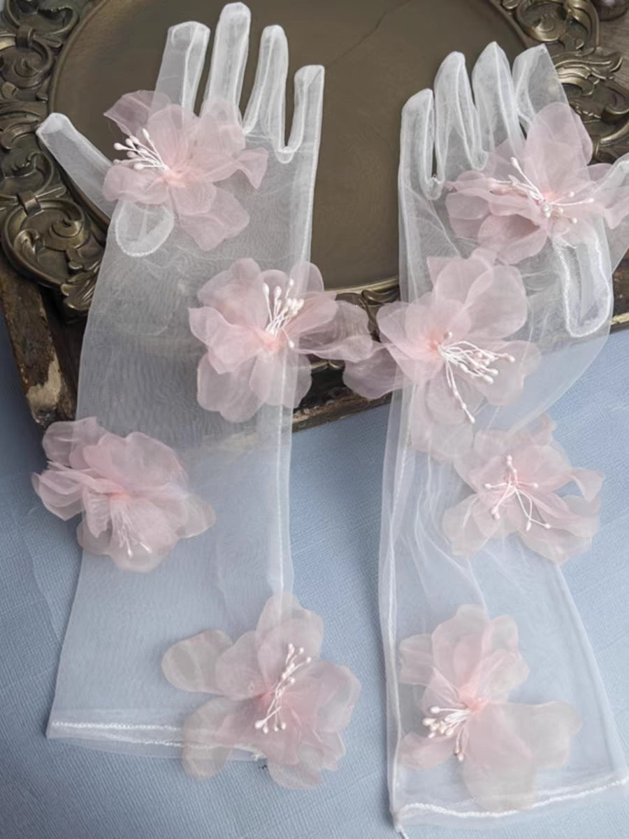 Romantic Pink Blossom Long Sheer Gloves - Elegant Wedding Accessory