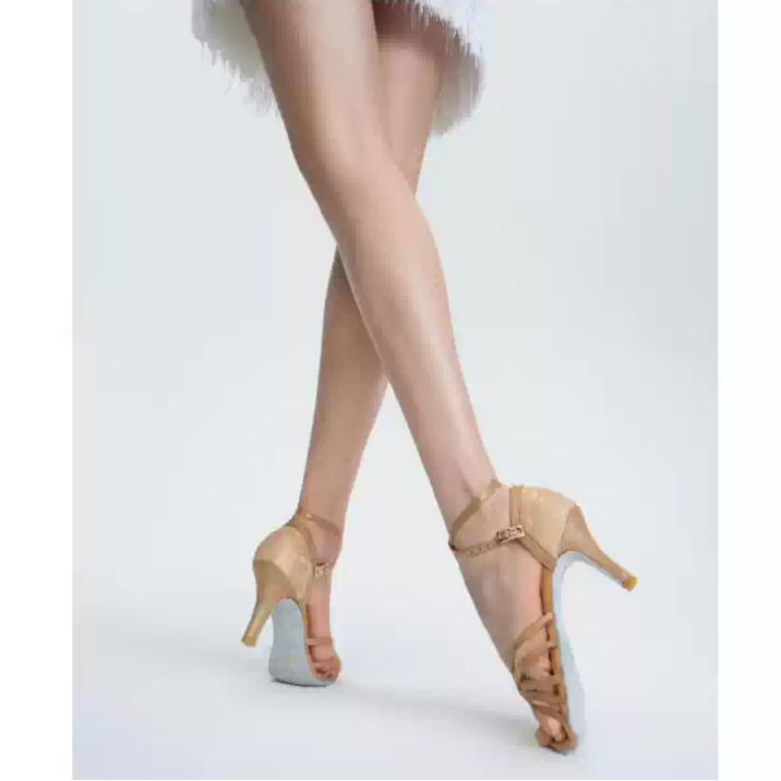 The sculpted heel offers just the right elevation to glide with grace, while the flexible suede sole provides optimal balance for spins, quick flicks, and smooth walks. Whether on a samba stage, rumba floor, or the glowing lights of a ballroom, these golden shoes turn every step into choreography.