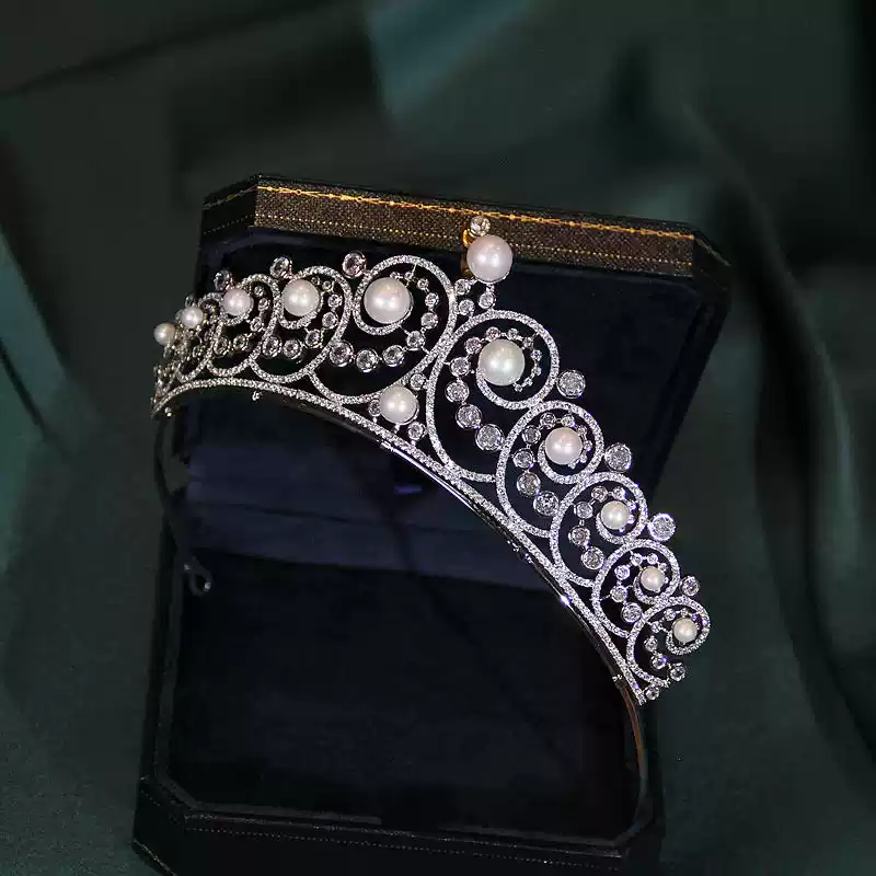 Complete your bridal look with this Luxurious Zircon and Pearl Bridal Crown, the perfect accessory to add elegance and sophistication to your wedding day. Crafted with sparkling zircon stones and delicate pearls, this stunning crown brings a royal touch to your bridal ensemble, enhancing your beauty with timeless charm.