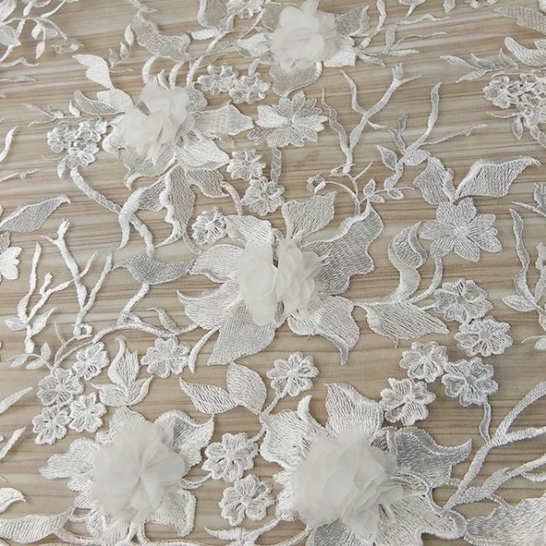 We offer a wide selection of luxury fabrics, including silk, lace, tulle, satin, and more. If you're unsure of what fabric will work best for your design, you can order fabric samples from us to help make the right choice.