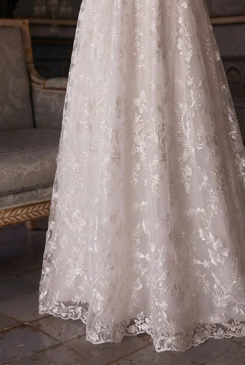 We source our fabrics globally, and we offer a wide range of colors and fabric types, including lace, tulle, and satin. If you have specific requests, feel free to contact us and we’ll do our best to match your preferences.