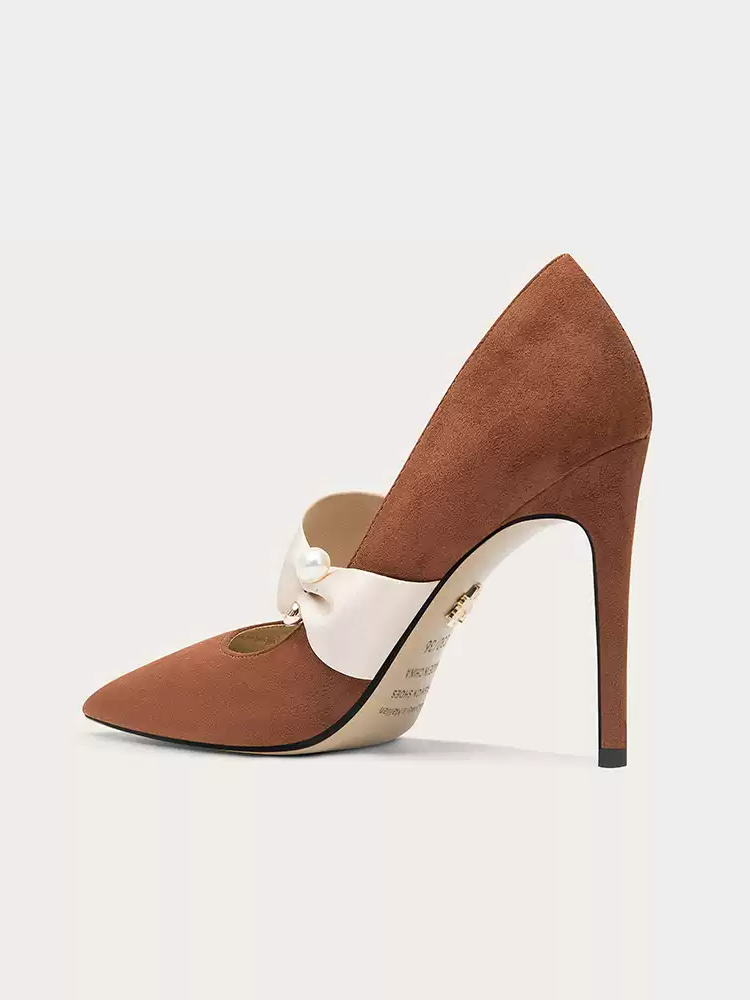 Step into elegance with these Vintgae Inspired Burnt Orange high heels, designed for the modern yet classic woman. Crafted with premium suede and adorned with a chic pearl-embellished strap, these shoes exude sophistication and charm. Featuring a pointed toe and slim stiletto heel, they elongate your silhouette, making them perfect for formal events or professional settings.