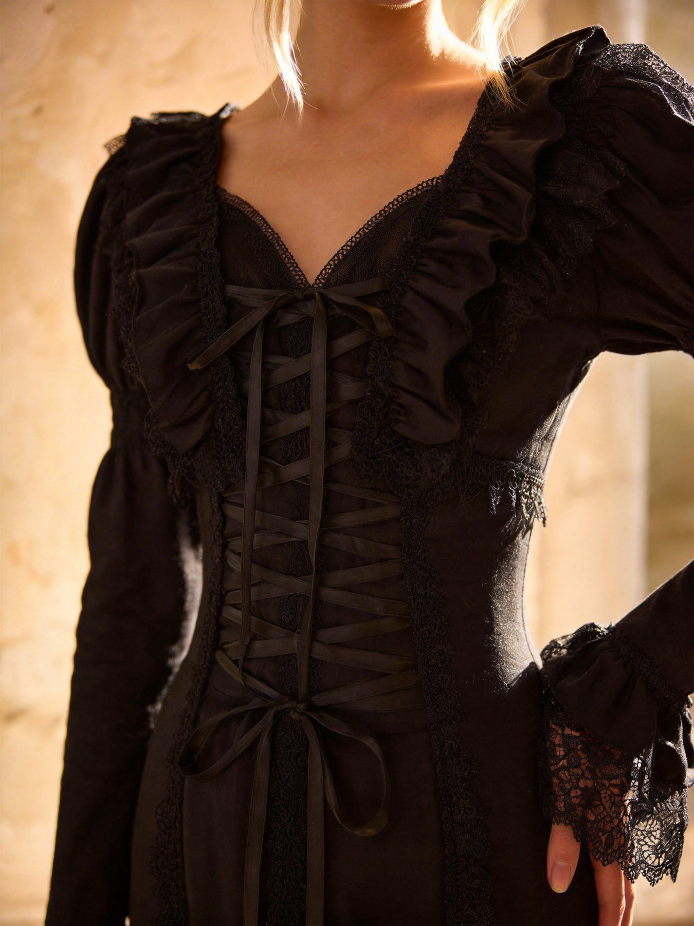 Fabric: Chiffon with lace panel and ruffle detailing