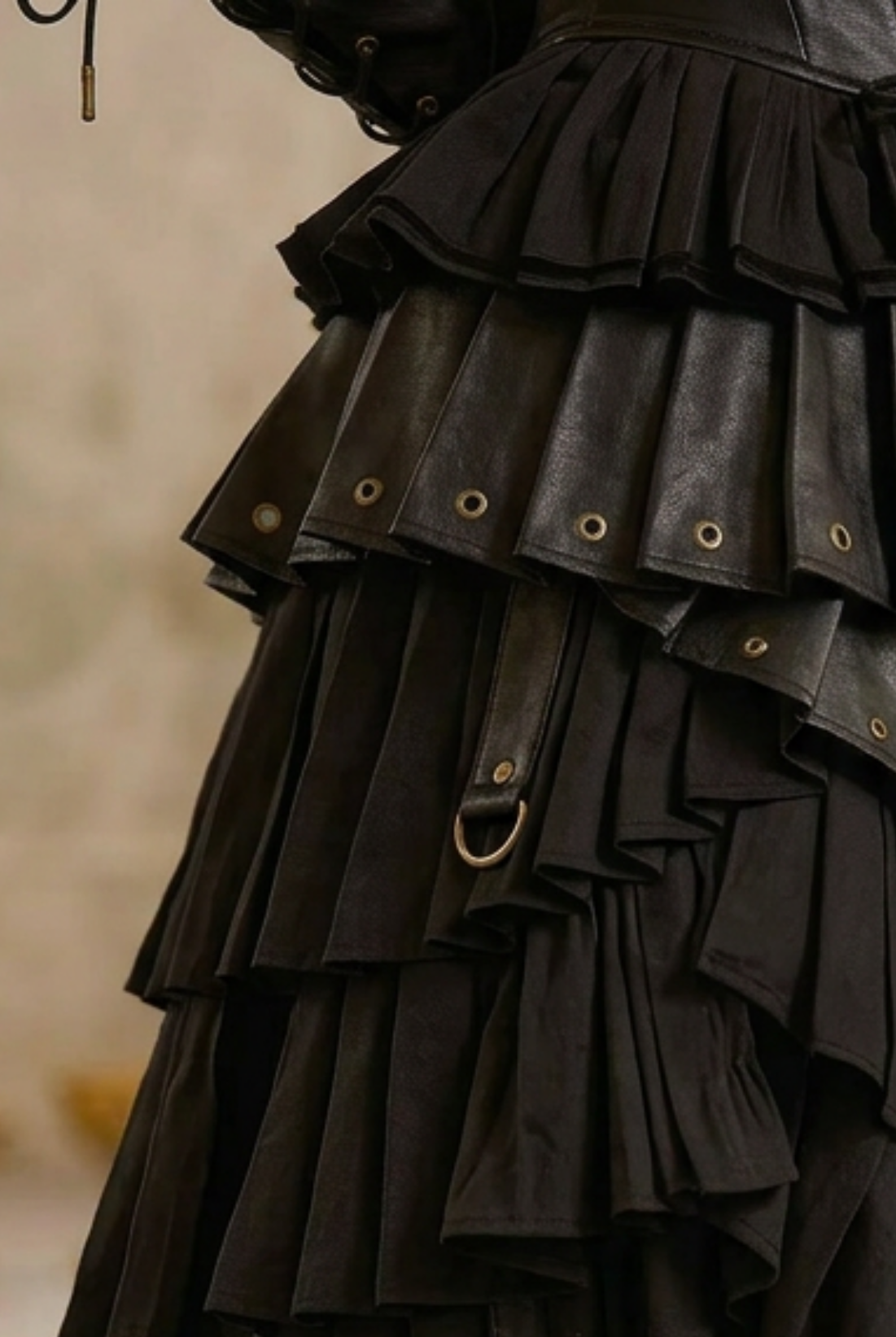 Fabric: Faux leather with chiffon and structured pleated panels