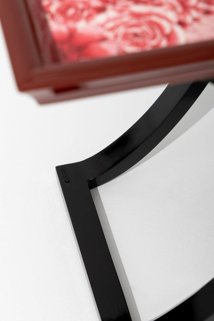 Finished with a rich dual-tone lacquer in Ebony Black and Crimson Red, the surface gleams with depth and durability. Every layer is baked at low temperature for a long-lasting, enamel-like glow, while the X-cross legs ensure exceptional stability.