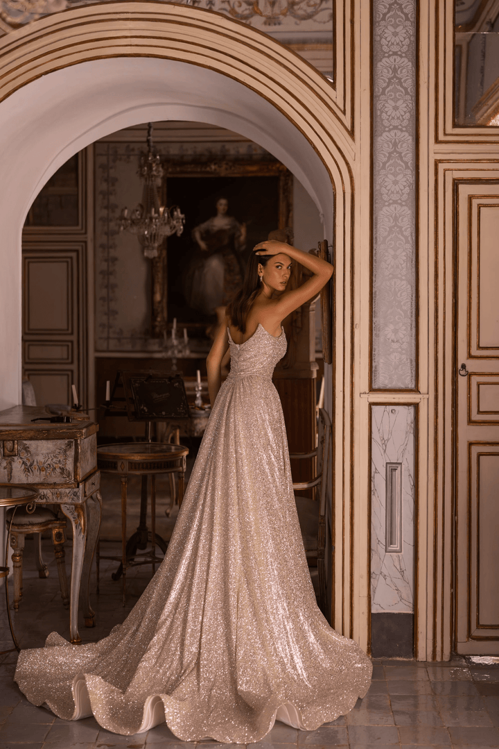 Embrace your special day with confidence and style in this glamorous sequin wedding dress, designed to make you the star of your unforgettable moment.