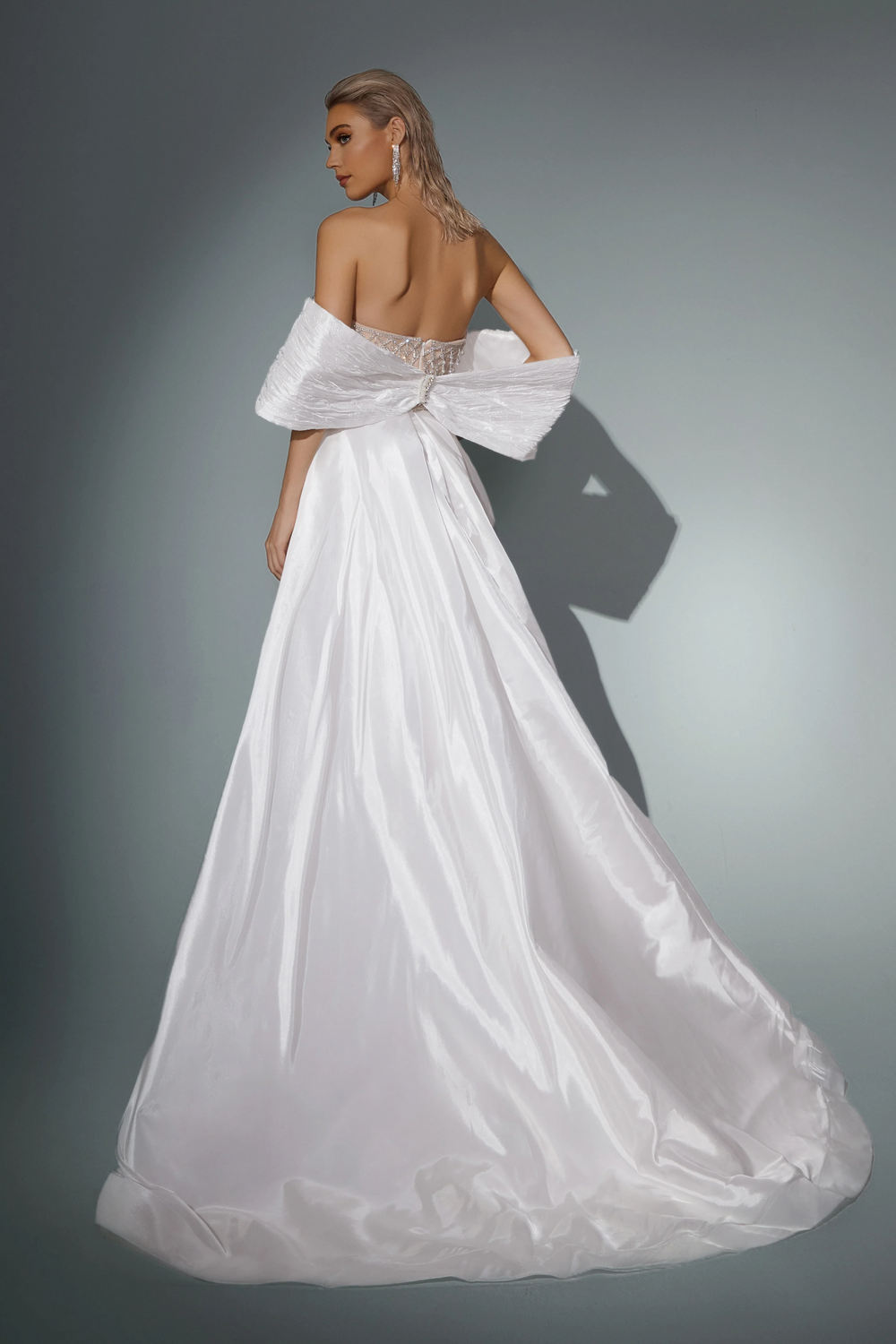 • Oversized Bow Detail: Adds a touch of romance and elegance to the gown.