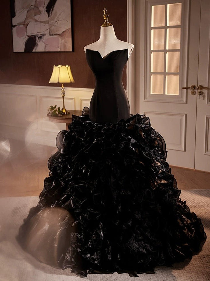 Gothic Black Wedding Dress - Ruffled Mermaid Wedding Gown with Sweetheart Neckline Plus Size