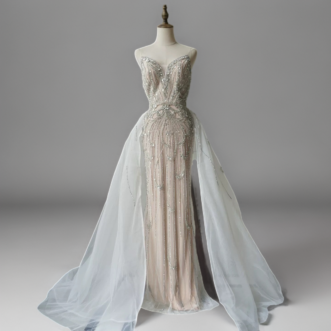 This champagne gown is ideal for weddings, galas, or red-carpet moments. Whether worn as an embellished glitter maxi dress or a sequin ball gown for a special celebration, it promises a luxurious presence that is unforgettable. Step into the spotlight and let your gown speak of grace, confidence, and quiet luxury.