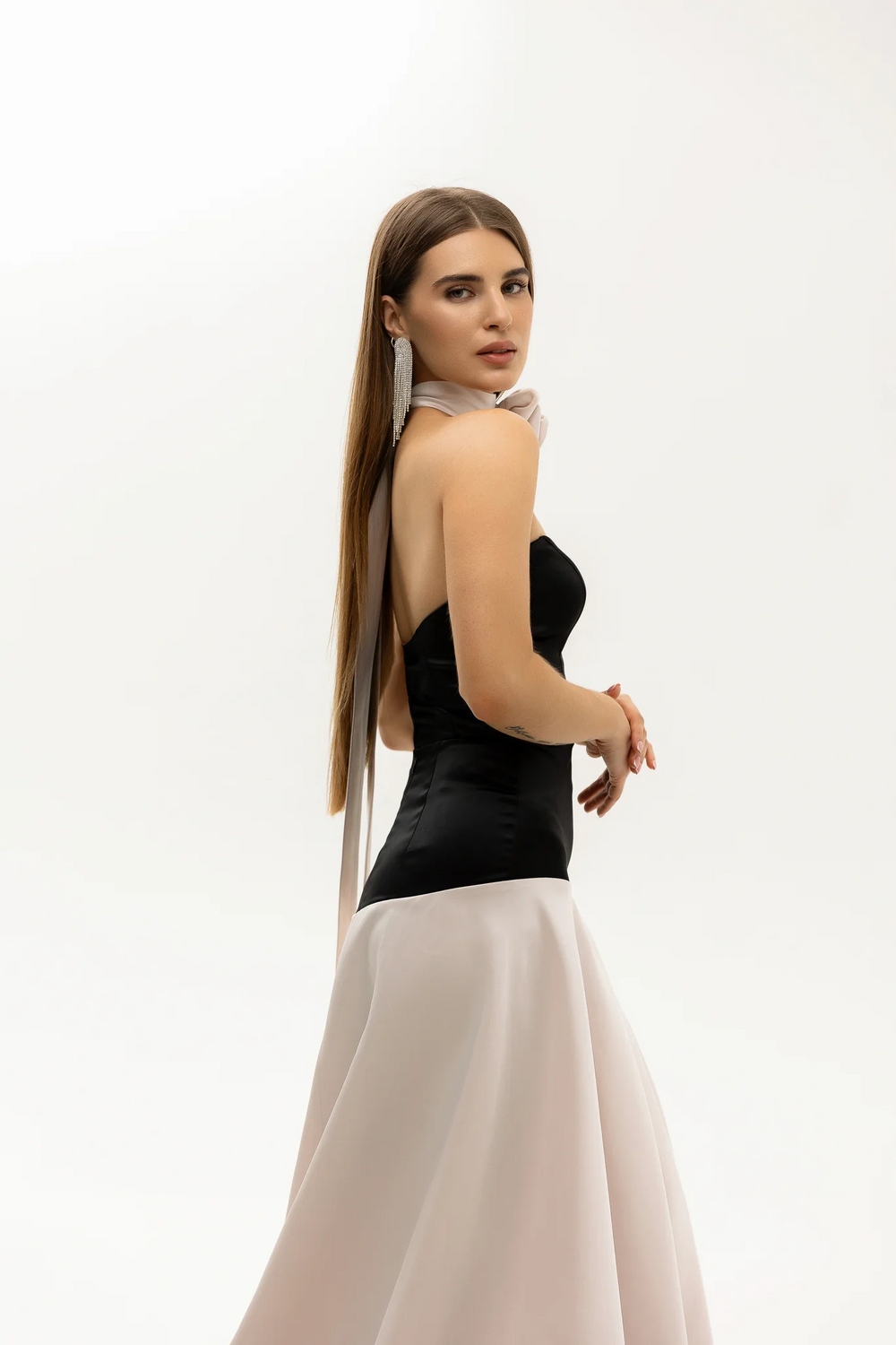 This black carpet dress delivers sophistication with the freedom to transform—confident, timeless, and effortlessly chic.