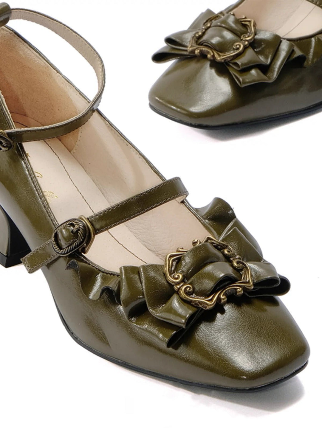Green Regency Heels and Lolita Mules with Bow - Lolita Shoes - WonderlandByLilian