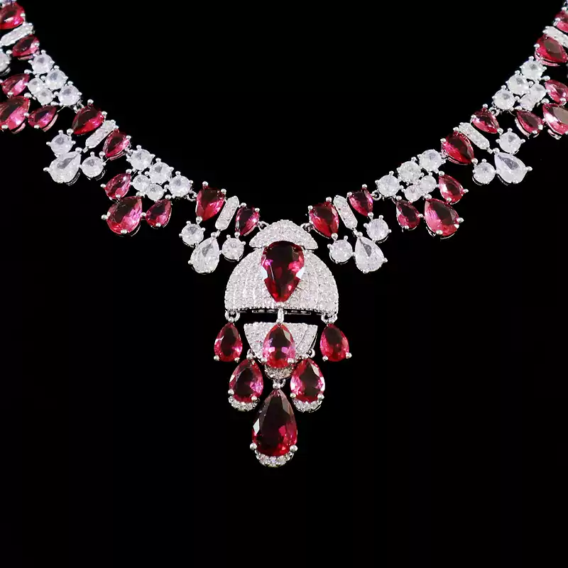 Make a lasting impression with this ruby necklace and earrings set, crafted to bring elegance, sophistication, and a touch of regal beauty to your special occasions.
