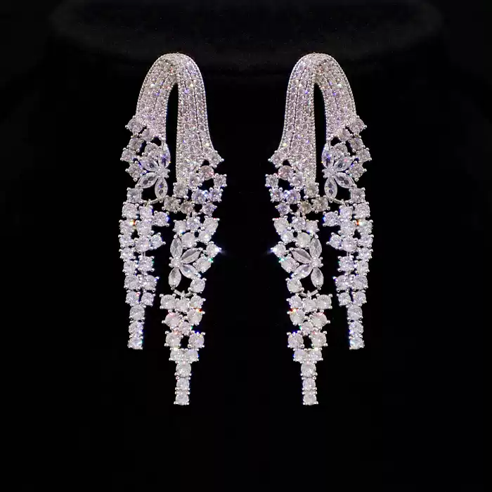 Enhance your bridal or event look with these luxurious zircon tassel earrings, a perfect choice for adding an extra layer of elegance and charm to your special day.