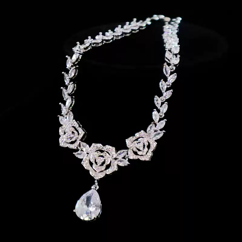 • Design: Floral-inspired with a sparkling drop pendant and intricate leaf detailing
