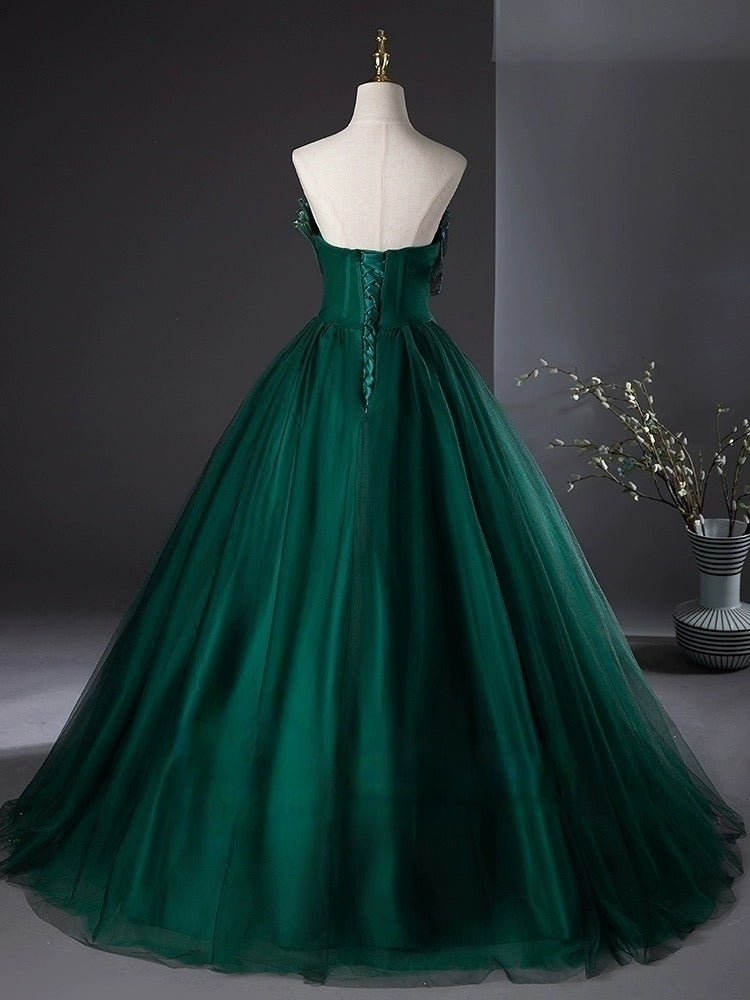 Gothic Emerald Green Ball Gown with Luminous Pleated Accents - Green Evening Dress Plus Size