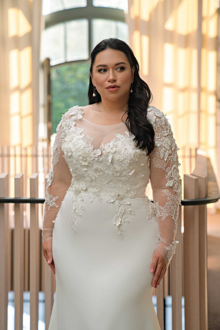 Plus Size Tulle Mermaid Wedding Dress with Long Sleeves - Lace Wedding Gown Long Sleeve - NALA
